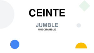 C E I N T E Jumble. The jumbled letters appeared in the daily jumble puzzle and you have to guess the correct answer word, that is made up by all these letters. As you may imagine, different words are made of out same set of letters, in such cases we include both words or the most likely one. It is also possible that the same answer word appears by a different set of letters which are ordered differently.