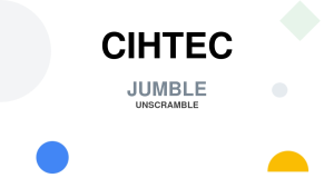C I H T E C Jumble. The jumbled letters appeared in the daily jumble puzzle and you have to guess the correct answer word, that is made up by all these letters. As you may imagine, different words are made of out same set of letters, in such cases we include both words or the most likely one. It is also possible that the same answer word appears by a different set of letters which are ordered differently.