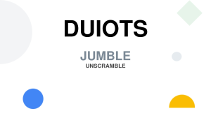D U I O T S Jumble. The jumbled letters appeared in the daily jumble puzzle and you have to guess the correct answer word, that is made up by all these letters. As you may imagine, different words are made of out same set of letters, in such cases we include both words or the most likely one. It is also possible that the same answer word appears by a different set of letters which are ordered differently.