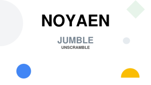 N O Y A E N Jumble. The jumbled letters appeared in the daily jumble puzzle and you have to guess the correct answer word, that is made up by all these letters. As you may imagine, different words are made of out same set of letters, in such cases we include both words or the most likely one. It is also possible that the same answer word appears by a different set of letters which are ordered differently.