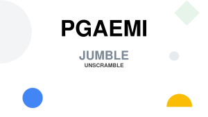 P G A E M I Jumble. The jumbled letters appeared in the daily jumble puzzle and you have to guess the correct answer word, that is made up by all these letters. As you may imagine, different words are made of out same set of letters, in such cases we include both words or the most likely one. It is also possible that the same answer word appears by a different set of letters which are ordered differently.