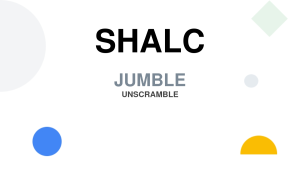S H A L C Jumble. The jumbled letters appeared in the daily jumble puzzle and you have to guess the correct answer word, that is made up by all these letters. As you may imagine, different words are made of out same set of letters, in such cases we include both words or the most likely one. It is also possible that the same answer word appears by a different set of letters which are ordered differently.