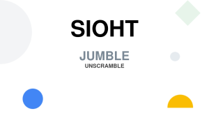 S I O H T Jumble. The jumbled letters appeared in the daily jumble puzzle and you have to guess the correct answer word, that is made up by all these letters. As you may imagine, different words are made of out same set of letters, in such cases we include both words or the most likely one. It is also possible that the same answer word appears by a different set of letters which are ordered differently.