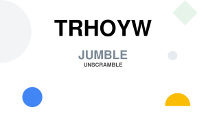 T R H O Y W Jumble. The jumbled letters appeared in the daily jumble puzzle and you have to guess the correct answer word, that is made up by all these letters. As you may imagine, different words are made of out same set of letters, in such cases we include both words or the most likely one. It is also possible that the same answer word appears by a different set of letters which are ordered differently.