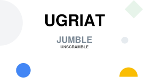 U G R I A T Jumble. The jumbled letters appeared in the daily jumble puzzle and you have to guess the correct answer word, that is made up by all these letters. As you may imagine, different words are made of out same set of letters, in such cases we include both words or the most likely one. It is also possible that the same answer word appears by a different set of letters which are ordered differently.