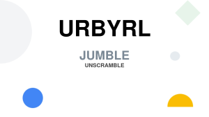 U R B Y R L Jumble. The jumbled letters appeared in the daily jumble puzzle and you have to guess the correct answer word, that is made up by all these letters. As you may imagine, different words are made of out same set of letters, in such cases we include both words or the most likely one. It is also possible that the same answer word appears by a different set of letters which are ordered differently.