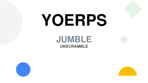 Y O E R P S Jumble. The jumbled letters appeared in the daily jumble puzzle and you have to guess the correct answer word, that is made up by all these letters. As you may imagine, different words are made of out same set of letters, in such cases we include both words or the most likely one. It is also possible that the same answer word appears by a different set of letters which are ordered differently.