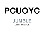 P C U O Y C Jumble. The jumbled letters appeared in the daily jumble puzzle and you have to guess the correct answer word, that is made up by all these letters. As you may imagine, different words are made of out same set of letters, in such cases we include both words or the most likely one. It is also possible that the same answer word appears by a different set of letters which are ordered differently.