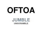 O F T O A Jumble. The jumbled letters appeared in the daily jumble puzzle and you have to guess the correct answer word, that is made up by all these letters. As you may imagine, different words are made of out same set of letters, in such cases we include both words or the most likely one. It is also possible that the same answer word appears by a different set of letters which are ordered differently.