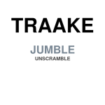 TRAAKE Unscrambled Jumble. The letters are presented in the daily jumble puzzle and you have to guess the correct word that is made up by all these scrambled letters. We unscrambled TRAAKE jumble letters for you guys and below you can find the correct word of it. Sometimes different words are made of out same set of letters, in such cases we include both words or the most likely one.