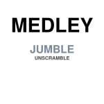 MEDLEY Unscrambled Jumble. The letters are presented in the daily jumble puzzle and you have to guess the correct word that is made up by all these scrambled letters. We unscrambled MEDLEY jumble letters for you guys and below you can find the correct word of it. Sometimes different words are made of out same set of letters, in such cases we include both words or the most likely one.