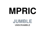 MPRIC Unscrambled Jumble. The letters are presented in the daily jumble puzzle and you have to guess the correct word that is made up by all these scrambled letters. We unscrambled MPRIC jumble letters for you guys and below you can find the correct word of it. Sometimes different words are made of out same set of letters, in such cases we include both words or the most likely one.